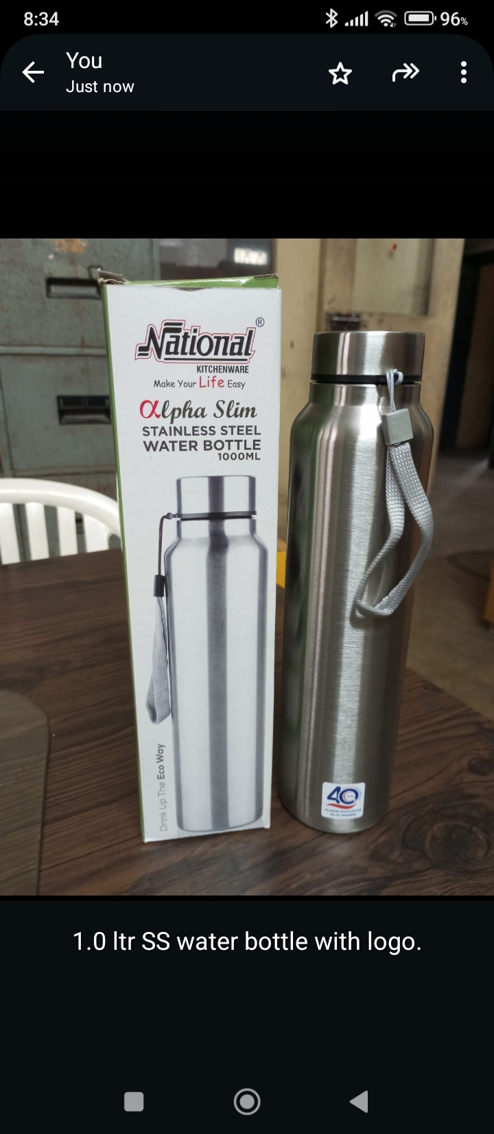 Alumni 1.0 Ltr SS Water Bottle Rs.150 each